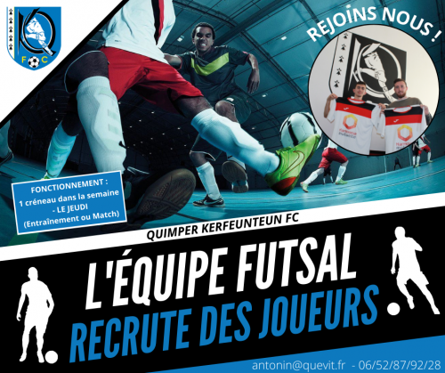 Le 30/07/2021 à 09h42Le Quimper Kerfeunteun FC recrute des joueurs Futsal (débutant ou expérimenté)