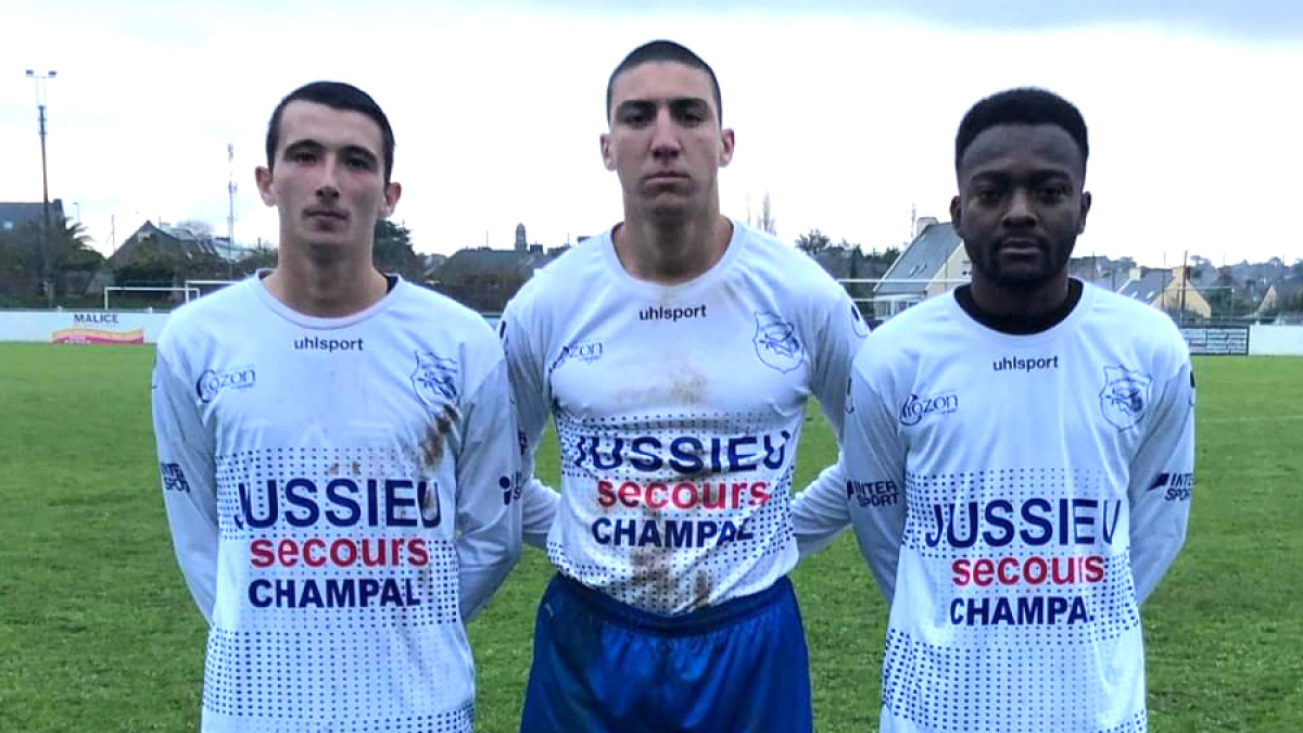 | Les buteurs Crozonnais : Jimmy Cabon, Thomas Kacel (X3), Zirardine Saindoux (X2). Crédit photo US Crozon |