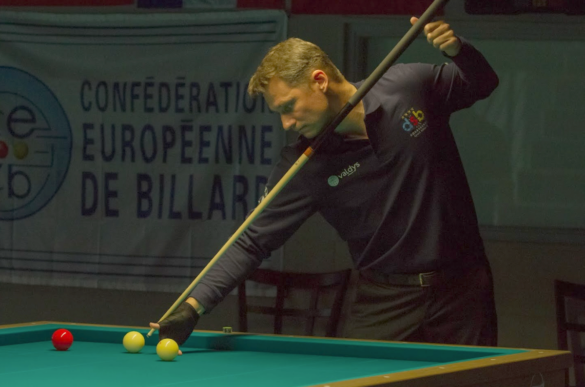 Déjà qualifiée pour le Final 6 avant même de jouer cette 4e et dernière journée de la phase de poules, la Team Douarnenez Valdys avait néanmoins un objectif clair, ce samedi 17 janvier à l’Espace Jules Verne : finir le travail avec autorité et conserver la première place de la poule. Mission accomplie, et de quelle manière. Dans une journée aux enjeux contrastés, Andernos nourrissait encore un mince espoir de terminer en tête, tandis que Saint-Pierre-des-Corps jouait tout simplement sa survie dans l’élite. Dans ce match à trois, le tour suivant opposait Douarnenez à Saint-Pierre-des-Corps. Une victoire suffisait aux Finistériens pour s’assurer définitivement la première place de la poule. À la bande, Grégory Le Deventec montrait la voie à ses coéquipiers en s’imposant 120-63 en 16 reprises face à Jean-François Pelouin. Louis Edelin confirmait ensuite au cadre 71/2 (200-123 en 13 reprises contre Frédéric Goubart), avant que Marek Faus ne scelle l’issue de la rencontre au cadre 47/2 avec une prestation de très haut niveau (250-100 en cinq reprises face à Yannick Le Gregam (6-0, Douarnenez).