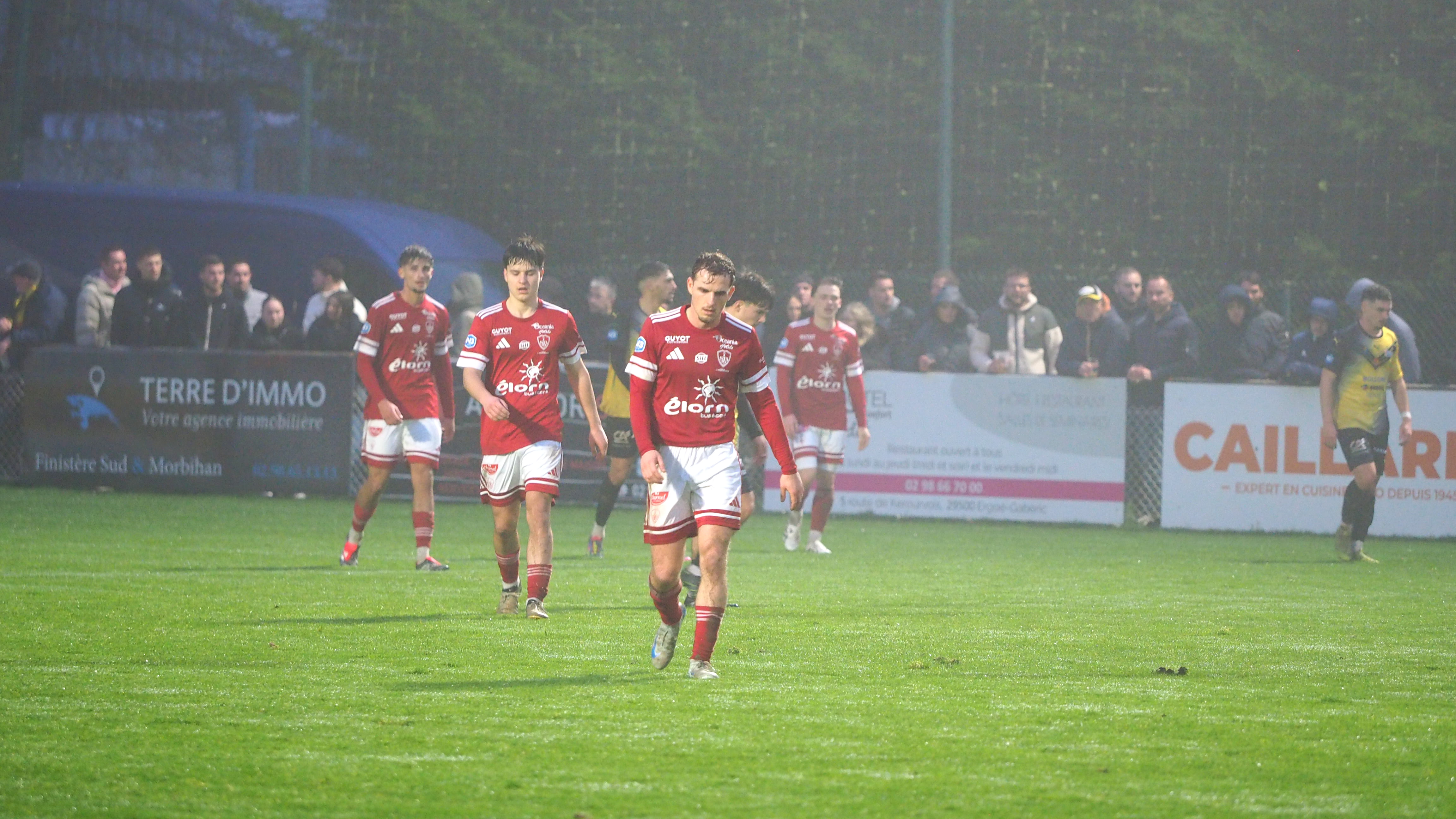 Verrouillant la boutique sur ses quatre dernières sorties, les Paotred Dispount voulaient rester sur cette fermeture du robinet défensif, et trouver aussi les bons relais offensifs, pour désarçonner cette équipe du Stade Brestois 29, à trois points au classement. Obtenant son premier point de la saison à Menez Paul (3-3), les Gabéricois espéraient tendre à sa première victoire à domicile en 2026 face à ces Brestois. Après une première demi-heure de décantation, en première période, les deux équipes mirent le turbo pour créer la première différence de cette rencontre. Idéalement lancé par Youssef Benali, Farouk Mecheri avait le bon angle mais il tombait sur Noah Jauny, dans le camp brestois (36'). Brest flairait aussi cette option, un centre en retrait trouvait Serigne Diop. Il plaçait un plat du pied aux 6 mètres, Clément Douguet sortait la définition parfaite de l'arrêt réflexe dans ses buts pour sauver littéralement les Paotred Dispount du 0-1 (38'). Pensant tenir ce 0-0, les locaux craquaient sur la minute suivante, sur un coup-franc a priori indirect, toppé dans la boîte, mais Noah Géraux, le meneur de jeu brossait son ballon parfaitement. Aucun joueur ne le touchait le ballon qui prenait même de la vitesse à son rebond au sol (0-1, 39').