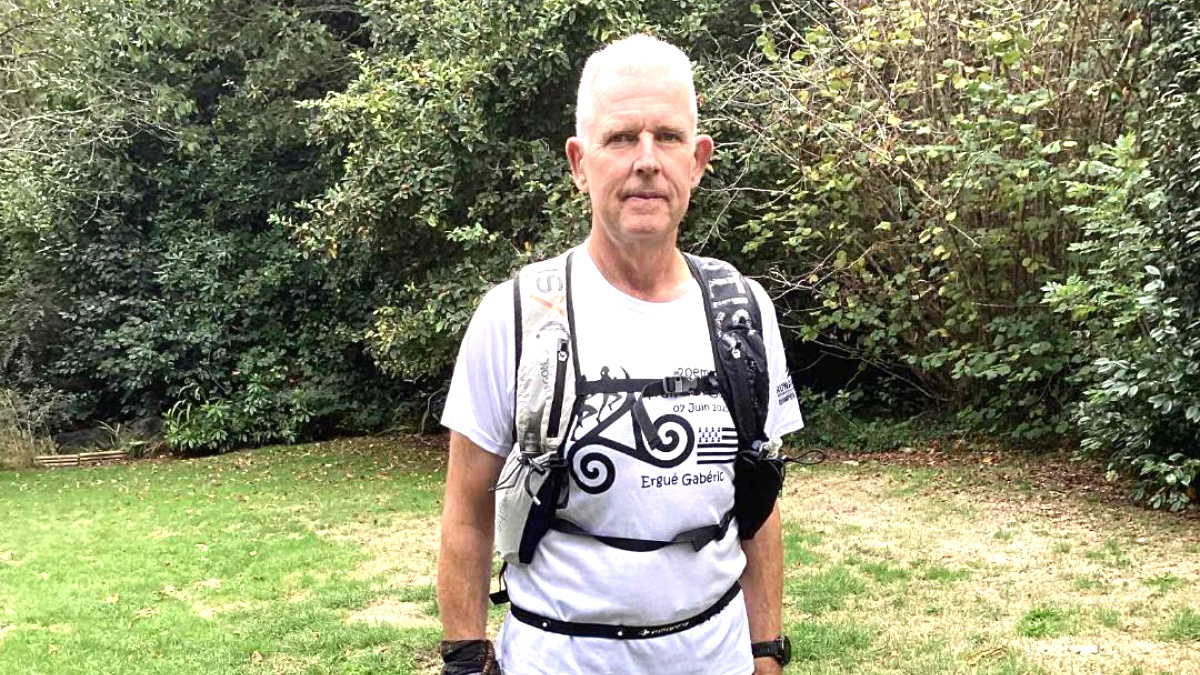 Légende: Il avait déjà fait l'Utlra Marin dans le Morbihan, ou les Templiers dans l'Aveyron, le Gabéricois, Dominique Nerzic a replongé dans l'ultra-trail, récemment à Telgruc/Mer pour le grand riad du Finistère. Crédit photo: DR