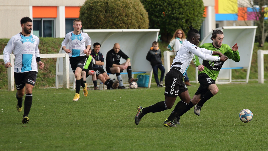 En match en retard de la 10° journée, le leader, le Quimper Kerfeunteun FC (C) se déplaçait sur le terrain du second, le FC Pleuven (B), en lever de rideau de Pleuven - Goulien en D1. Un point séparait les deux équipes avant ce match au sommet. Durant tout le match, les Pleuvennois n'ont jamais été en mesure d'inquiéter les Quimpérois. Dominateur de bout en bout, les visiteurs avaient amené une très grosse équipe dans leur 11 de départ et ouvraient le score après vingt minutes de jeu par Kingsley ATASIE sur une ouverture de Mohamed CHILAH (0-1, 20'). Après la demière heure de jeu, les Quimpérois doublaient la marque par un but signé Jean-Pierre GUILAVOGUI sur une passe de Mathéo CRISTOFARO (0-2, 32'). Ce même joueur récidivait juste avant la pausse en adressant à Aboubacar TOURE le troisième but (0-3, 43'). A la mi-temps, les Dragons rentraient avec un retard de trois buts. Toutes les attaques Pleuvenoises échouaient sur la meilleure défense du groupe qui gardait une nouvelle fois ses cages inviolées.