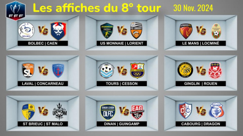 19/11/24 - 09h37Les affiches du 8ème tour de la coupe de France pour l'ensemble des clubs bretons