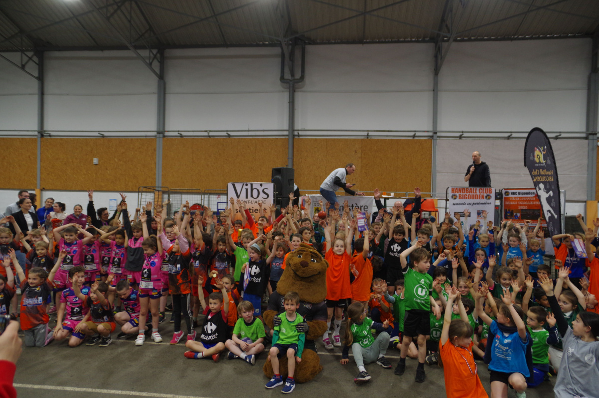 Les 180 têtes blondes ont participé à ce tournoi tout au long de la journée, alternant les matches, les câlins à Rok (La mascotte de la FFHB) et la danse de fin de tournoi avec la chorégraphie déclinée par les jeunes du HBC Bigouden, particulièrement apprécié par les petits et même les grands.