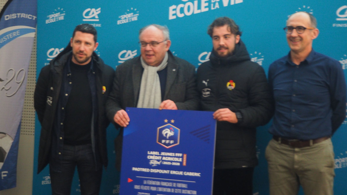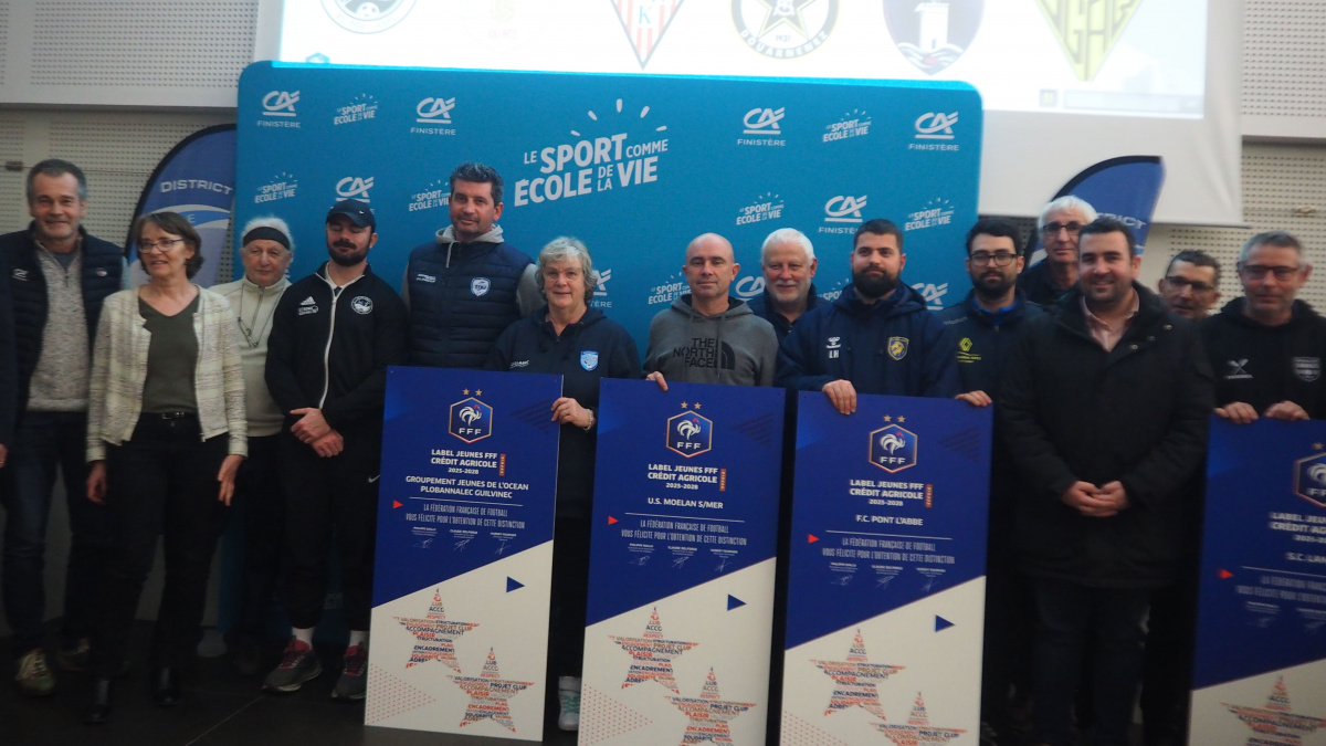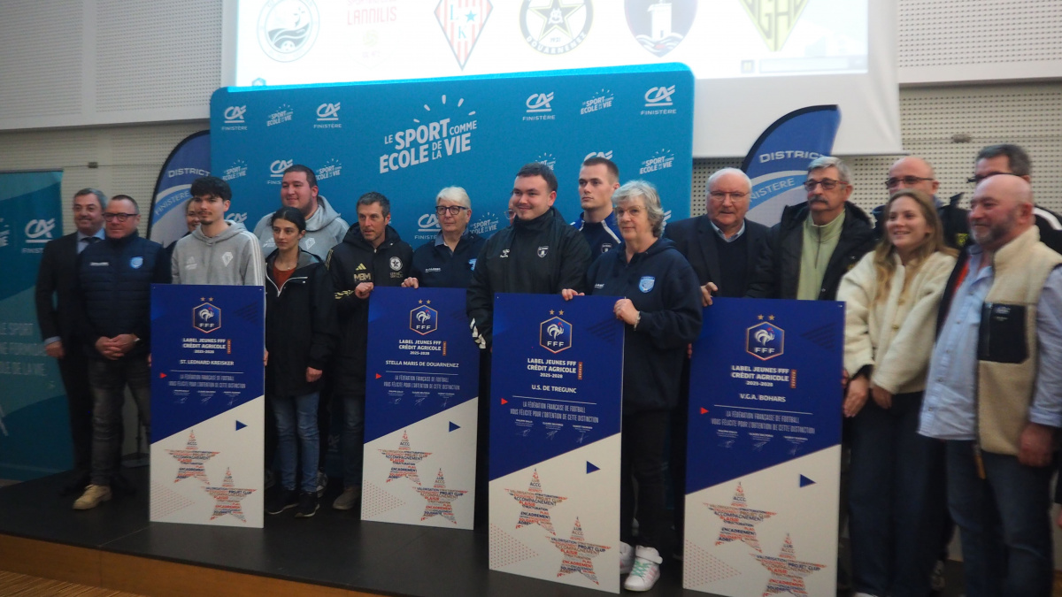 Acteur engagé à l'échelle nationale depuis 52 ans au côté de la fédération française de football, le Crédit Agricole l'est aussi localement. Ce mercredi soir, le Crédit Agricole du Finistère organisait une soirée de remise de récompenses aux 20 clubs du Finistère, labellisés sur la période 2026-2029, pour leurs actions envers les catégories jeunes, féminines et futsal. A la maison des sports de Ty Nay, et en association avec le district du Finistère, cette soirée a été l'occasion pour ses clubs de se retrouver dans un moment privilégié qui leur était consacré. Structuré autour de quatre axes-clés, le sportif, l'associatif, l'éducatif et l'encadrement et formation, et différenciés en trois strates, Label Elite, Label Excellence et Label Espoir, les 20 clubs promus étaient tous présents, en ce mercredi soir. Prenant le relais de Guy Nicolas, qui a été remercié vivement pour son action au profit du football finistérien et du sport finistérien, Audrey Brossard, citait le long partenariat engageant le Crédit Agricole à la FFF. " On est sur un partenariat historique, démarré en 1974. Le football amateur est un pilier de la vie locale, avec une forte valeur de proximité, d'inclusion. On décline ce partenariat national à une échelle locale, en étant partenaire du district du Finistère. On est très heureux chaque année, d'accueillir ces Labels jeunes de la catégorie U6 aux U19. Le sport est une vraie école de la vie et marque un dynamisme sur notre territoire. Cette soirée est spécialement consacrée à mettre en avant les clubs du Finistère avec la remise de 20 labels Jeunes FFF - Crédit Agricole".