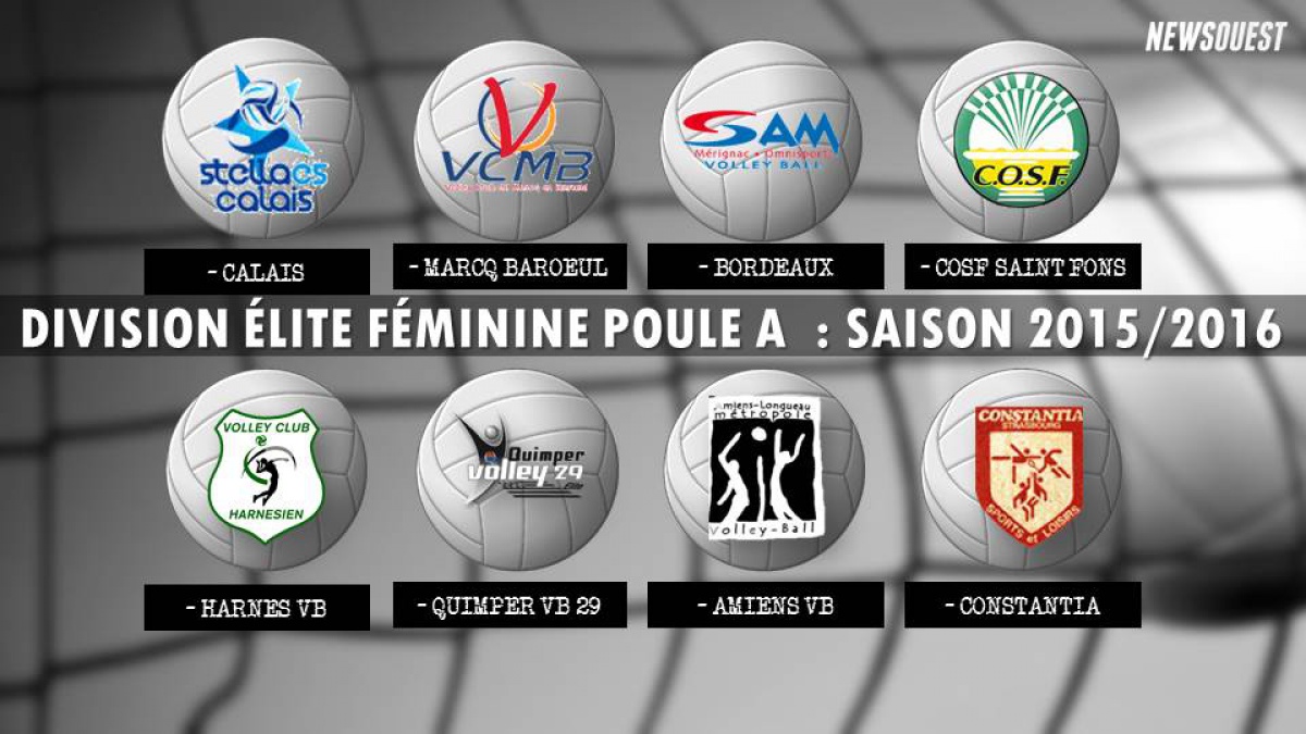 Pour la saison 2015/2016, le nombre de clubs du Championnat d'Elite a été réduit à huit contre dix la saison dernière. Dans la poule A, les Quimpéroises vont retrouver quatre équipes du Groupe de l'année dernière (CALAIS, BORDEAUX MERIGNAC, HARNES et MARCQ EN BAROEUL). Ce groupe est complété par AMIENS qui change de poule cette saison et deux "petits nouveaux", le CLUB OMNISPORTS DE SAINT-FONS (Rhône-Alpes), et le SP.LOISIRS CONSTANTIA (Alsace / Bas-Rhin).  Le Quimper Volley débutera la saison à domicile, le samedi 10 octobre contre BORDEAUX MERIGNAC et terminera par un déplacement à CALAIS le samedi 20 février 2016. C'est maintenant officiel, Sophie NOLIER revient à Quimper. Trois ans après une saison au VANNES VB et deux saisons au STADE FRANCAIS en Ligue A, elle va renforcer le poste de centrale.
