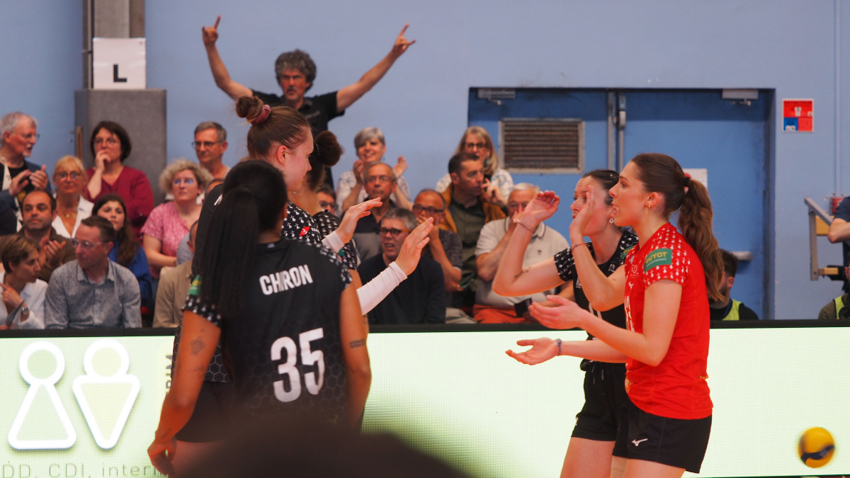 Mené 0-2, pour cette finale d'accession en Ligue A féminine, dans une salle affichant complet, Quimper était adossé au mur face à Nantes, à la pause. Sans autre plan que de rouler sur les trois derniers sets, la pause a permis de retrouver pleinement le collectif local. Battu sèchement en finale de la coupe de France fédérale, par cette même formation nantaise, au début de mois, cette seconde finale était évidemment la plus importante et symbolique, avec en prime, un gros enjeu pour l'équipe sortie vainqueur de ce duel, avec l'unique billet d'accession en Ligue A Féminine. Le départ était bon, côté local (5-2, 8-6), mais Nantes avait la carapace pour porter les coups décisifs. Très solide sur ses bases, les Ligériennes faisaient main basse sur ce premier service (20-25). Encore supérieur dans l'apparence, cette formation nantaise semblait faire le même match qu'en finale, sans trou, ni pitié. Ca avançait vite (8-11, 12-16). En face, la Quimpéroise, Julie Henyo amorçait le début de rebellion locale, avec une attaque qui passait bien à l'aile. Revenu, même dépassant à 21-19, Quimper voulait remettre de suite le curseur à 1-1, mais Nantes, avec trois ex-quimpéroises, dans leur effectif, dont Marie Névot, qui glissait le 24 et 25 points adverses, sur une attaque courte gemellaire (23-25, 0-2).