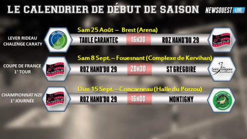 Le 23/07/2018 à 17h26Le calendrier de début de saison des Roz Hand'Du 29
