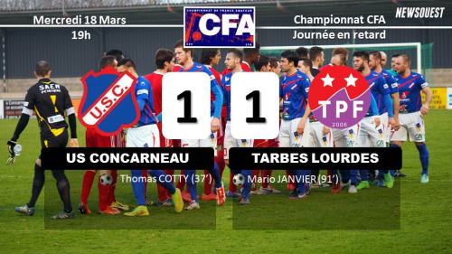Le 18/03/2015 à 21h03La douche froide pour le leader Concarnois à la 91'