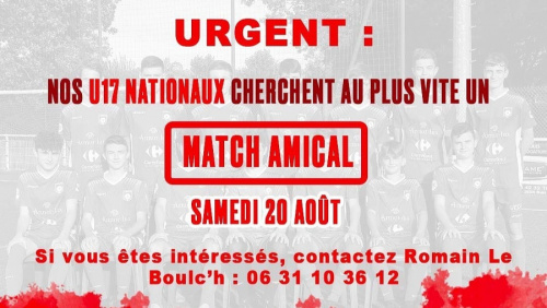16/08/22 - 21h20URGENT : Les U17 de Saint Renan recherchent un match amical