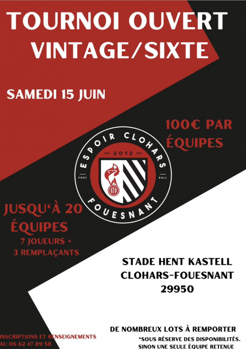 08/06/24 - 10h50Les inscriptions du Tournoi de sixte de Clohars-fouesnant, le 15 Juin 2024 sont ouvertes