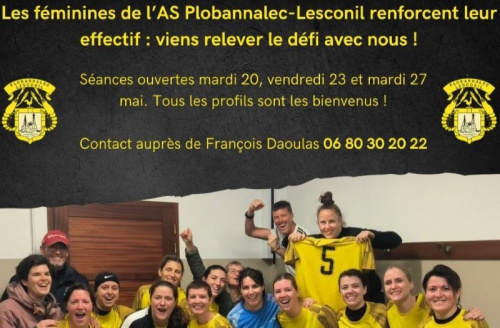 23/06/25 - 15h54La section féminine de L' AS Plobannalec-Lesconil recrute