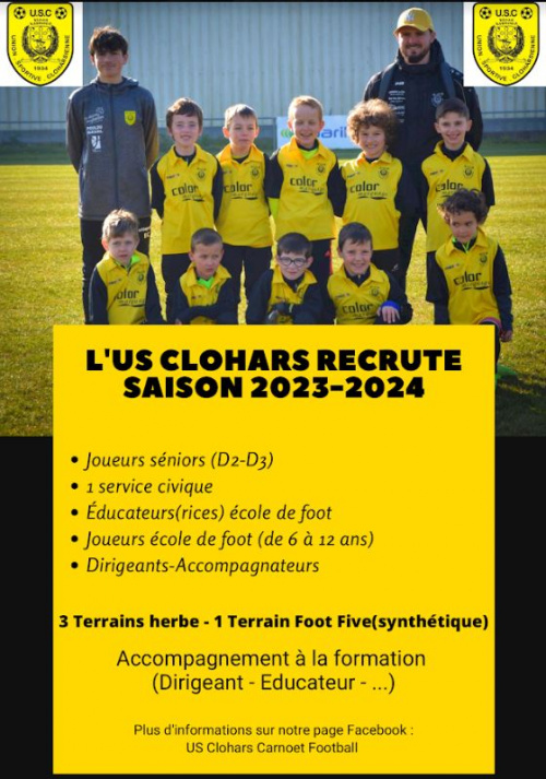 01/06/23 - 16h26L'US Clohars-Carnoët recrute pour la saison 2023/2024
