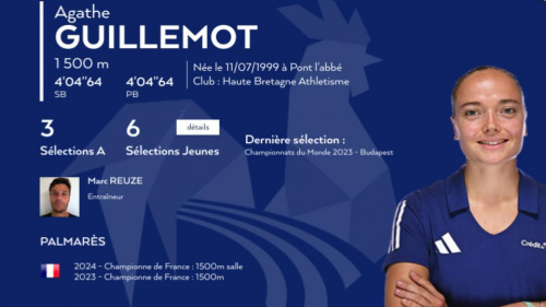 22/02/24 - 20h48La bigoudéne Agathe Guillemot sélectionnée pour les mondiaux en salle
