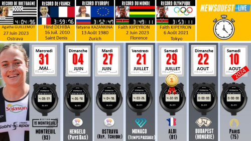 30/01/24 - 21h29Exploit d'Agathe Guillemot qui bat le record de France du mile indoor à Ostrava