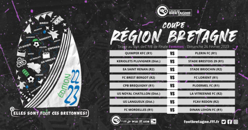 01/02/23 - 16h32Tirage des 8° de finale de la Coupe de Bretagne femmes