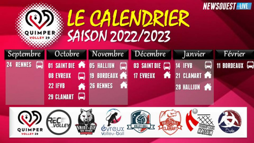 19/08/22 - 06h00Le calendrier du Quimper Volley